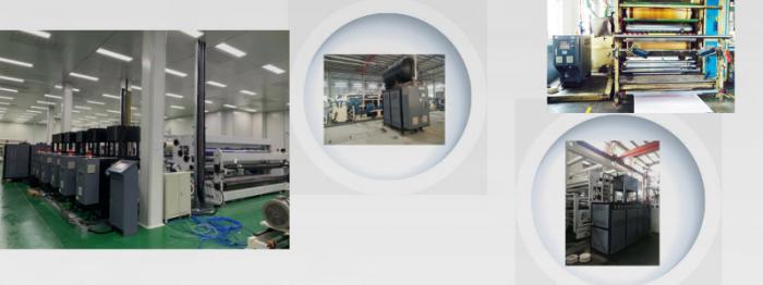 根據(jù)工藝要求而量身定制的一款雙系統(tǒng)合為一體的覆膜雙溫模溫機(jī),輥筒專用雙溫油溫機(jī)由于其具有兩套獨立系統(tǒng),特別適合于前后輥筒不同溫度,集中控制,更方便控制和操作,占地面積更小,接管更方便,更有利于車間的整潔。輥筒表面溫度是否一致和穩(wěn)定是影響產(chǎn)品的關(guān)鍵因素,以導(dǎo)熱油為循環(huán)介質(zhì)的模溫機(jī),是應(yīng)用于輥筒控溫系統(tǒng)的專用設(shè)備,具有流速快、控溫精度高、熱量損失小、占地面積小以及安裝方便等特點。模溫機(jī)運行過程:高溫導(dǎo)熱油從壓延機(jī)輥筒回到模溫機(jī)后,控制系統(tǒng)會根據(jù)設(shè)定溫度以及導(dǎo)熱油的實際溫度進(jìn)行判斷,并啟動加熱管進(jìn)行加熱或電磁閥進(jìn)行冷卻,循環(huán)油泵將導(dǎo)熱油輸送到壓延機(jī)輥筒進(jìn)行熱交換,達(dá)到控制輥筒表面溫度的目的,然后導(dǎo)熱油返回到模溫機(jī)進(jìn)入下一次循環(huán)。
