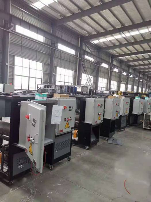 采用油加熱,以導(dǎo)熱油為熱載體并通過熱油循環(huán)泵強(qiáng)制循環(huán),將熱量傳輸給單個(gè)或者多個(gè)用熱設(shè)備,其控制溫度可分為200℃/300℃/350℃,加熱功率3KW-1200KW可供選擇,在各行業(yè)的使用非常普遍,在選擇時(shí)主要依據(jù)加熱功率,泵浦性能,加熱/恒溫/控溫功能這幾方面來進(jìn)行考慮。多用于模具的加熱、輥輪恒溫控制,反應(yīng)釜控溫恒溫或其他類似需求的工業(yè)設(shè)備控溫。其工作原理是:高溫循環(huán)導(dǎo)熱油從應(yīng)用設(shè)備出來后進(jìn)入模溫機(jī),設(shè)備根據(jù)設(shè)定的溫度對(duì)導(dǎo)熱油進(jìn)行加熱或降溫,并由高溫油泵輸送到應(yīng)用設(shè)備的管道入口,由此達(dá)到恒溫控制的目的可按客戶要求選購(gòu)功能:吹氣回油功能,即時(shí)降溫關(guān)機(jī)功能/多點(diǎn)溫度控制機(jī)組功能/RS 485通訊功能/實(shí)現(xiàn)自動(dòng)化管理。