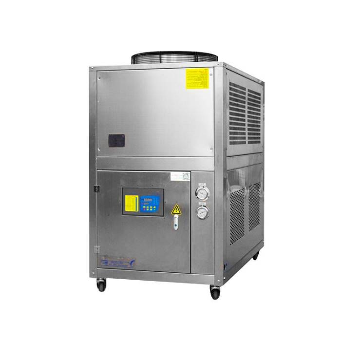 工業(yè)冷水機(jī)是一種能提供恒溫、恒流、恒壓的冷卻水設(shè)備。冷水機(jī)工作原理是先向機(jī)內(nèi)水箱注入一定量的水,通過冷水機(jī)制冷系統(tǒng)將水冷卻,再由水泵將低溫冷卻水送入需冷卻的設(shè)備,由同步電機(jī)凍水將熱量帶走后溫度升高再回流到水箱,達(dá)到冷卻的作用。冷卻水溫可根據(jù)要求自動調(diào)節(jié),長期使用可節(jié)約用水。因此,冷水機(jī)是一種的設(shè)備。